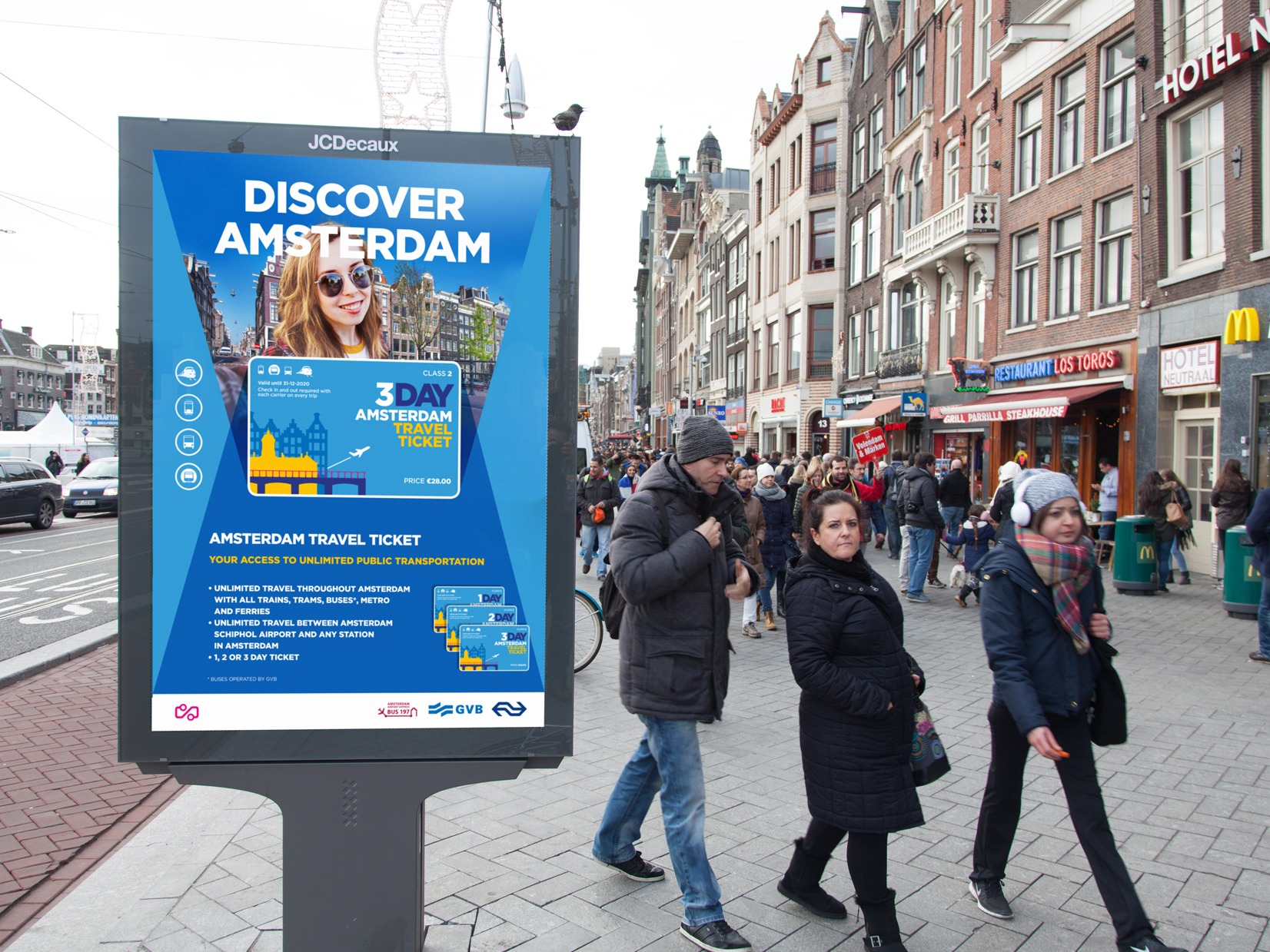 To share the benefits of these cards, we’ve combined online banners, narrowcasting and OOH campaigns, aimed at inspiring tourists to purchase the ticket – even before they arrive in the Netherlands. If the visitor decides to get the ticket upon arrival, that’s possible too – they are then led to the nearest sales point.
