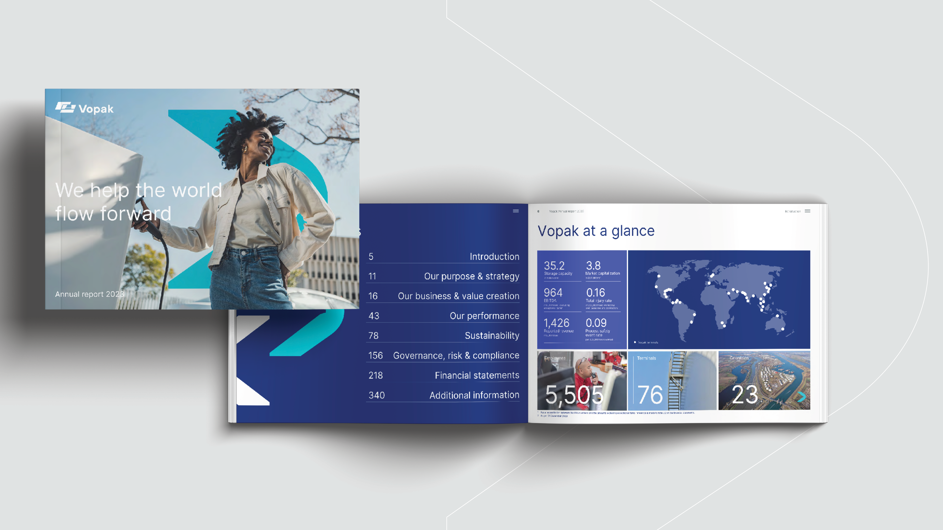 Al meer dan 12 jaar zijn we trouwe partner van het Rotterdamse Royal Vopak; de onafhankelijke, internationale distributeur en ‘opslaggigant’ van cruciale en vitale producten wereldwijd. Ooit begonnen met de ontwikkeling van het Sustainability Report in 2012, is onze samenwerking inmiddels uitgegroeid tot een all-round partnership waarbij DartDesign als preferred creatief en strategisch partner met regelmaat aanschuift en meeschakelt op organisatorisch belangrijke vraagstukken.
