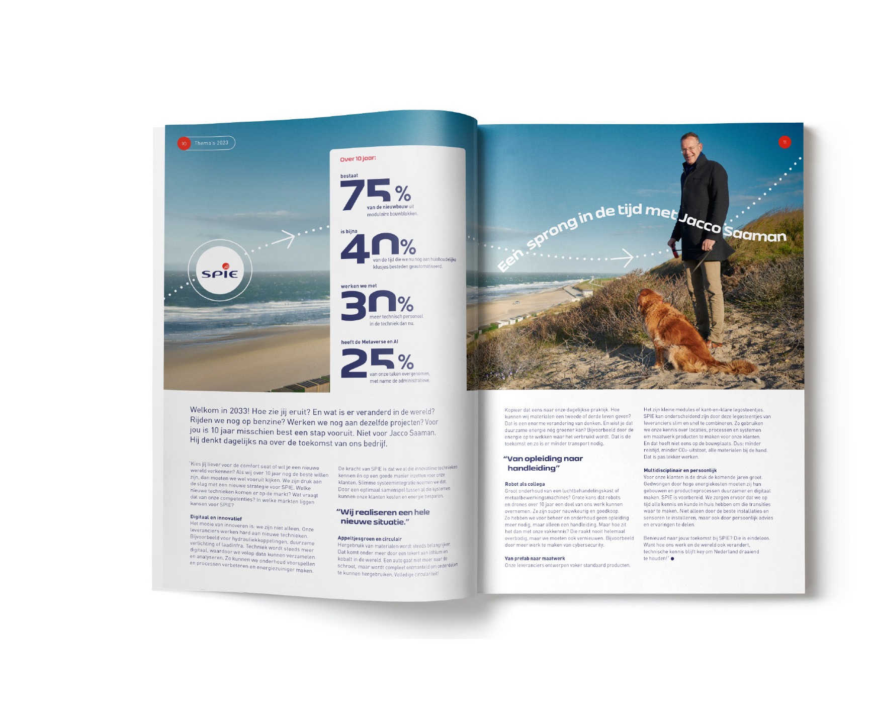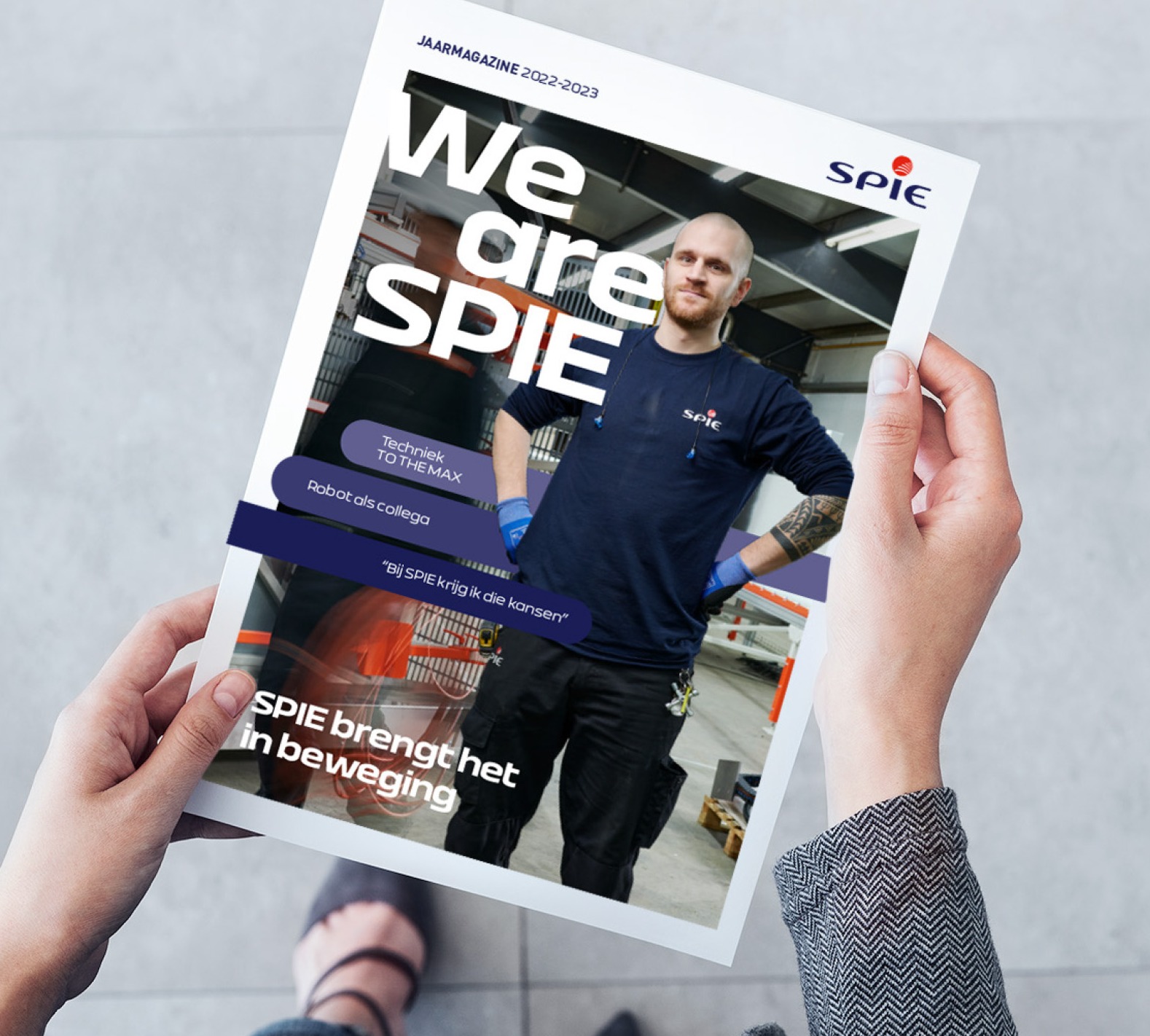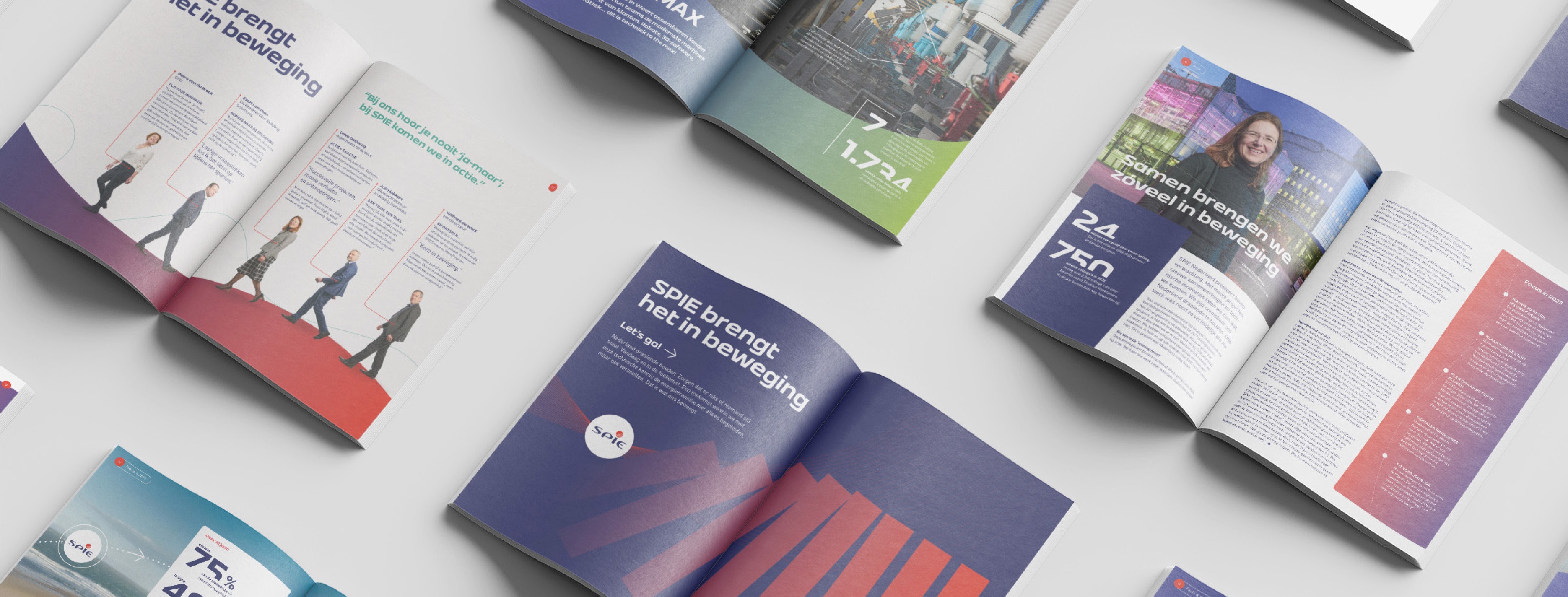 Een nieuw jaarmagazine, volledig gefocust rond de laatste slogan van SPIE: ‘SPIE brengt het in beweging’. De interne versie van die pay-off, ‘Samen zetten we zo veel in beweging’, wordt breed uitgedragen; ook door de executive en supervisory board die hun overtuigingen over beweging en vooruitgang zowel zakelijk als privé delen. In de zoektocht naar nieuw publiek en talent wordt de externe slogan ‘Dit is het voor mij’ gebruikt bij testimonials van SPIE medewerkers over hun motivatie en toewijding om onderdeel van SPIE te zijn.